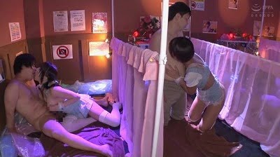 暗い店内、薄いカーテンで仕切られたエロい空間、スケスケのメイド衣装で即プレイ。ピンサロ風の手コキ風俗店といったところか!?