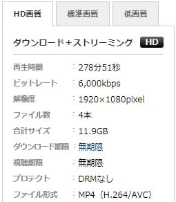 では「DRMなし」ならどうか?ガードが無いので、認証が無い。ダウンロードしたファイルは好きなように保存でき、好きなように加工でき、好きな時に(オフラインでも)見られる。DUGAの専用プレイヤーでなくても、一般的な再生ソフト(プレイヤー)で見ることができる。