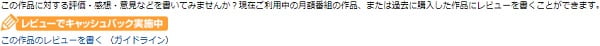 「レビューでキャッシュバック」のシステムの詳細は、「レビューでキャッシュバック実施中」のところをクリックすれば見ることができる。実際にレビューを書くときは、「この作品のレビューを書く」をクリック。